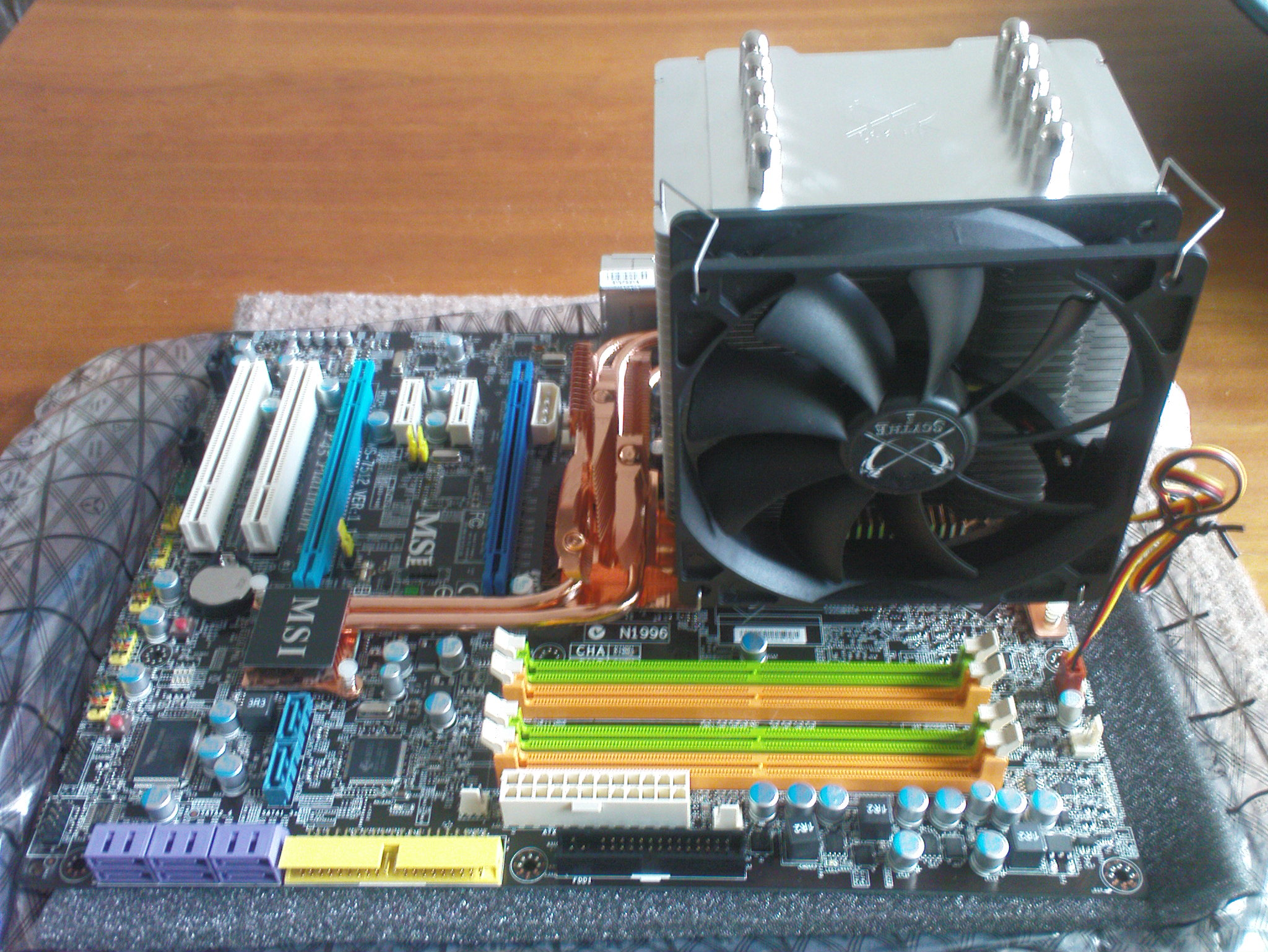 All in all, I am pretty content with my setup, photoflop runs pretty smooth with my 4GB. The Scythe Mugen is quiet and cools very well, but is HUGE. No probs with my HD and now I've tackled my nasty videocard prob I am pretty pleased with it, although it causes the occasional BSoD (hence the recommendation to go for the same chipset for mobo and GPU).