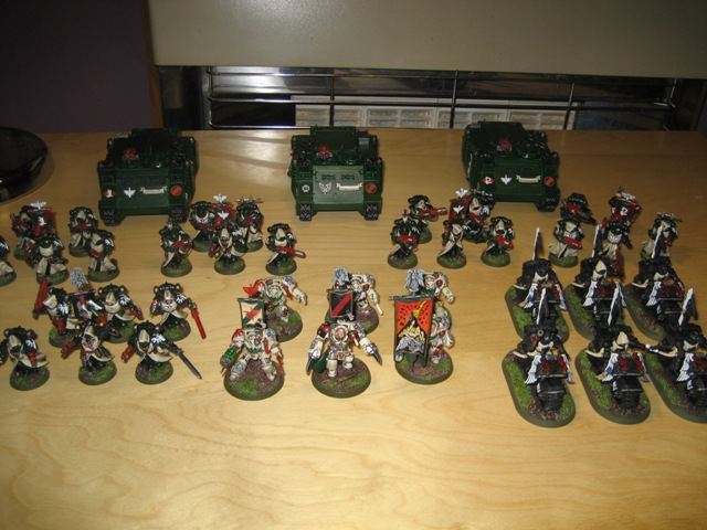 After breaking my back to get these boys finished for the weekend, I finally managed to get my 1500 point DA army complete. Amazingly, this is my first ever fully painted 40K army in nearly 13 years! The shame of it...