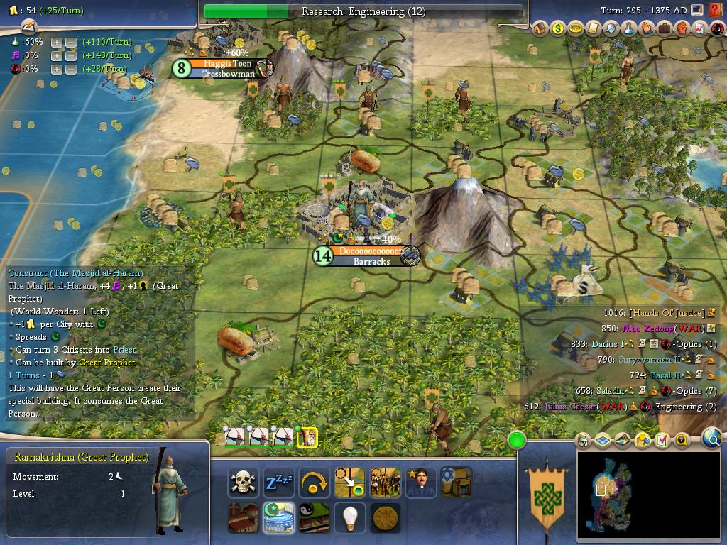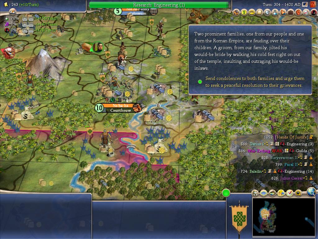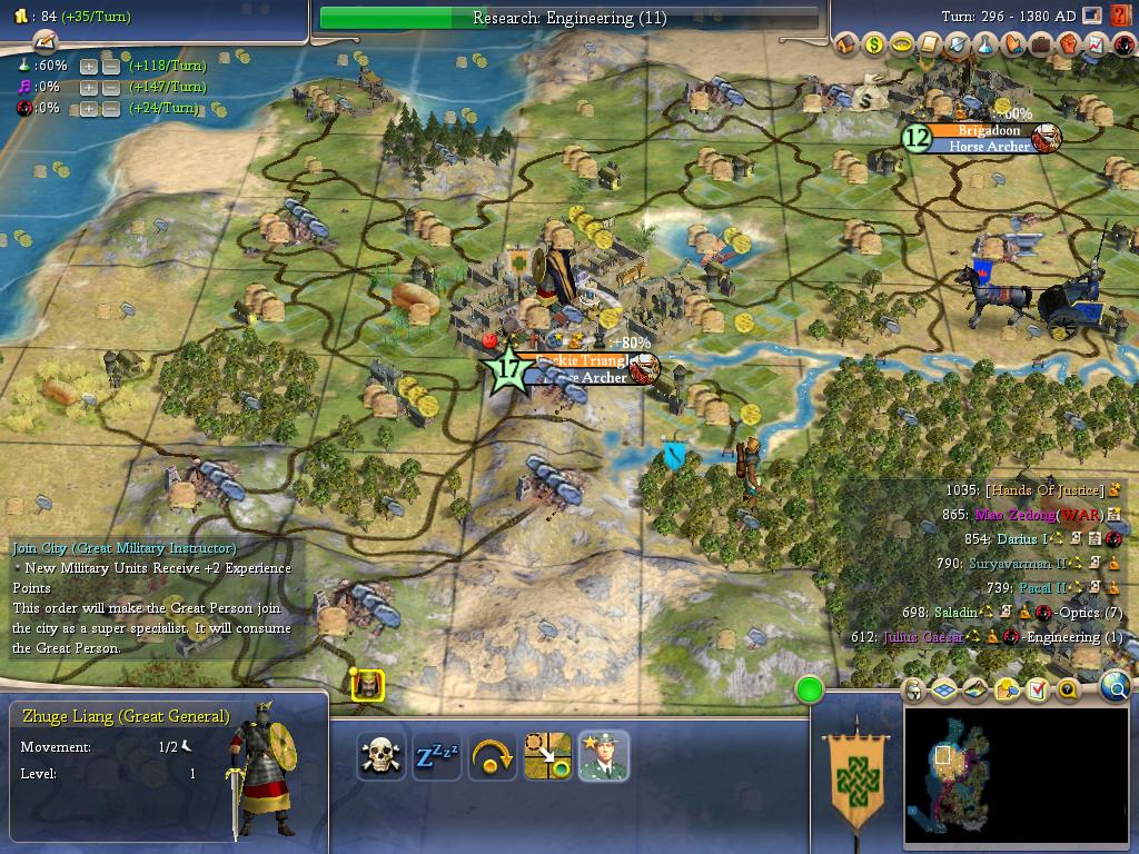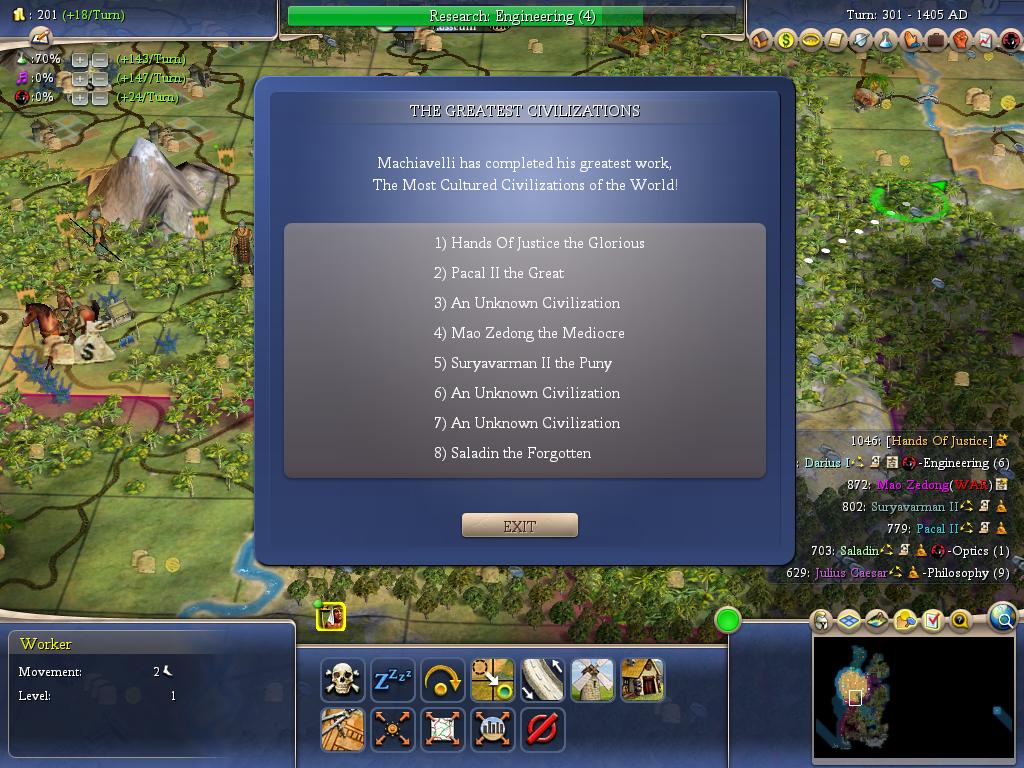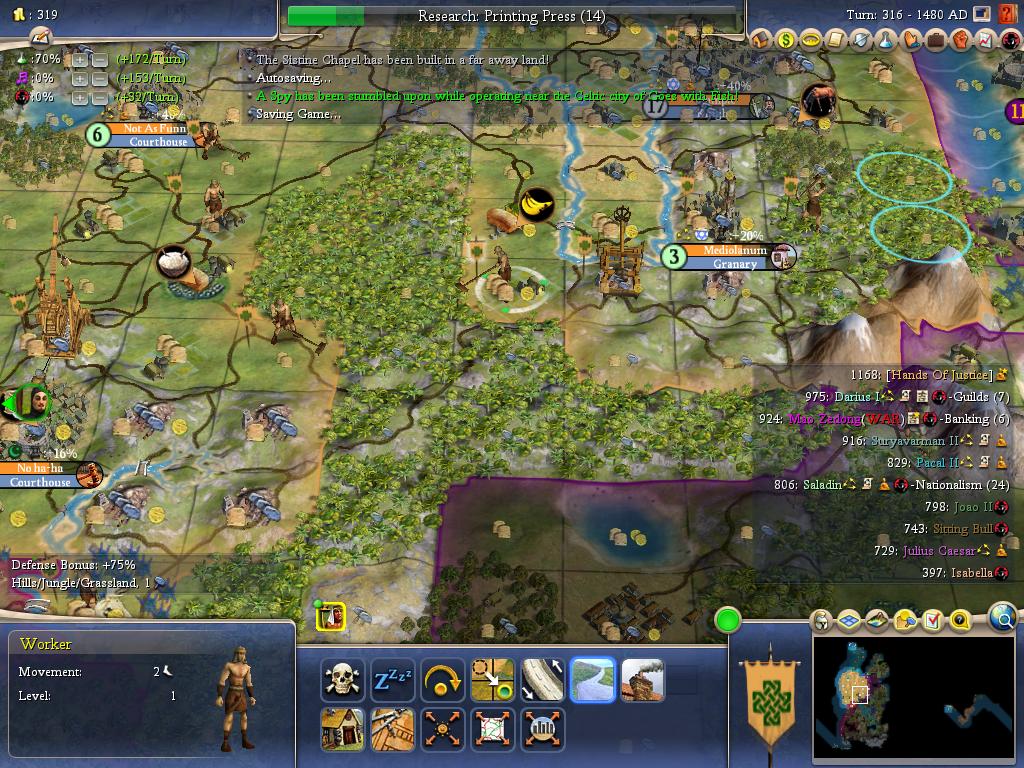 Assessing the state of the empire, Saffy3 was pleased to see that the capital was the greatest city on the continent. He also saw that the puny Mayans owned the 2nd and 3rd best cities. Once he got out of the shit he was in currently, he would have to pay them a 'visit', Saffy3 thought pleased.