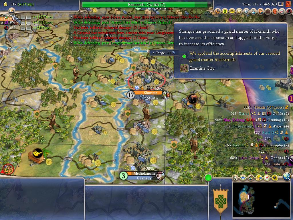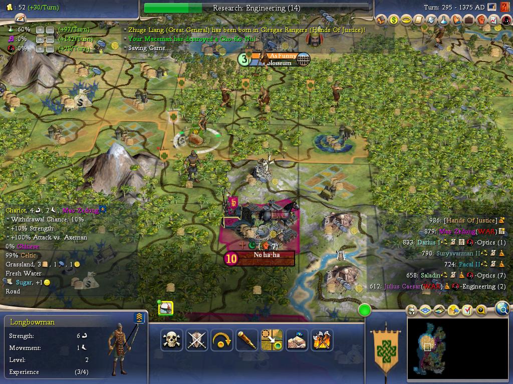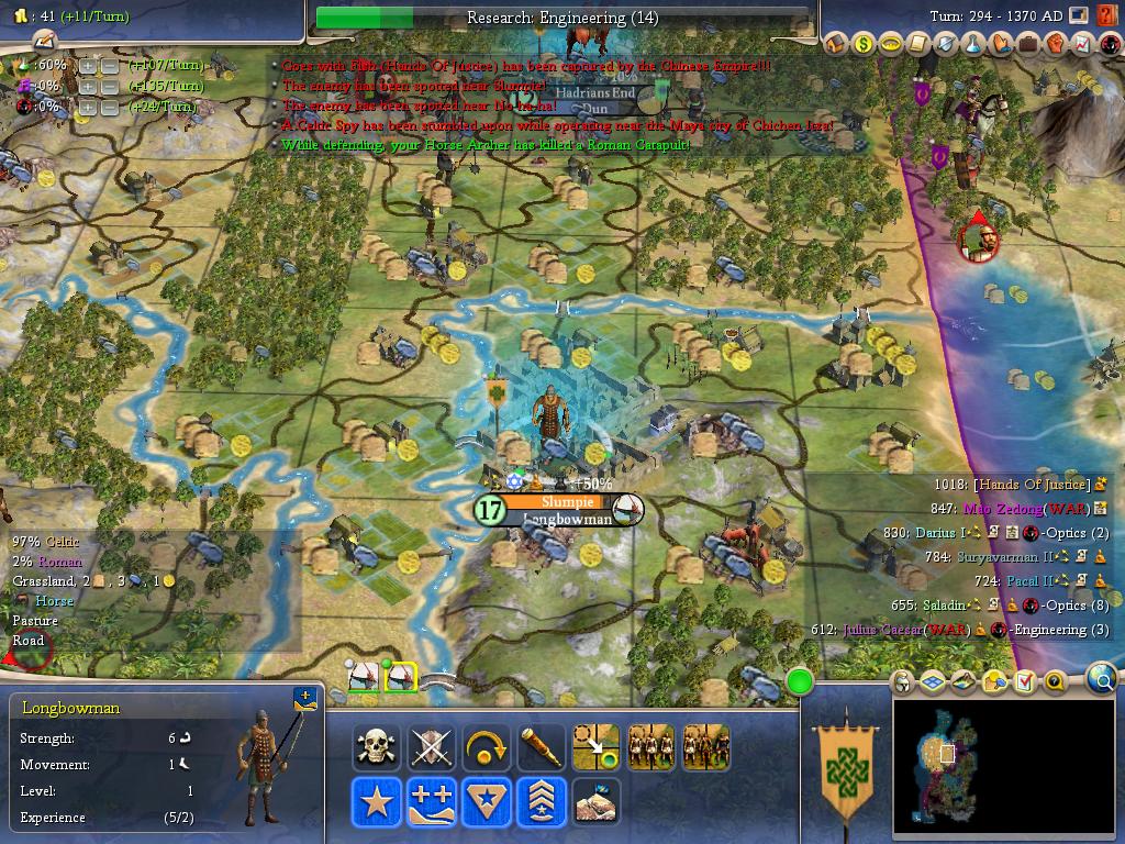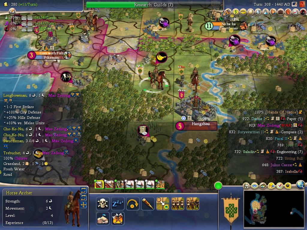 Victory! 1440 is the year that the Celtic people from Goes with Fish are reunited with their own again! Saffy3 now concentrates all his forces on the city of the wretched Chinese! But the Chinese forces from the Khmer front would come back before Saffy3 could muster a large enough force at the Chinese gates. He would have to wait even longer.