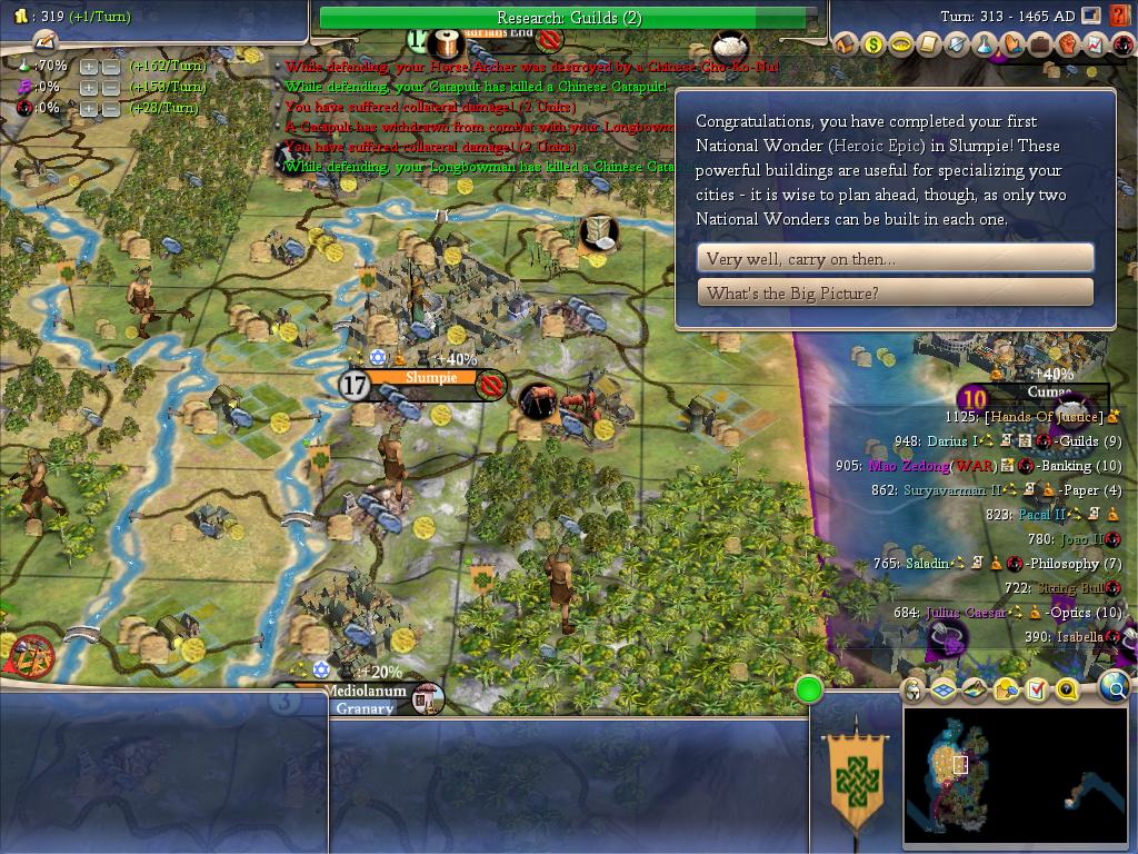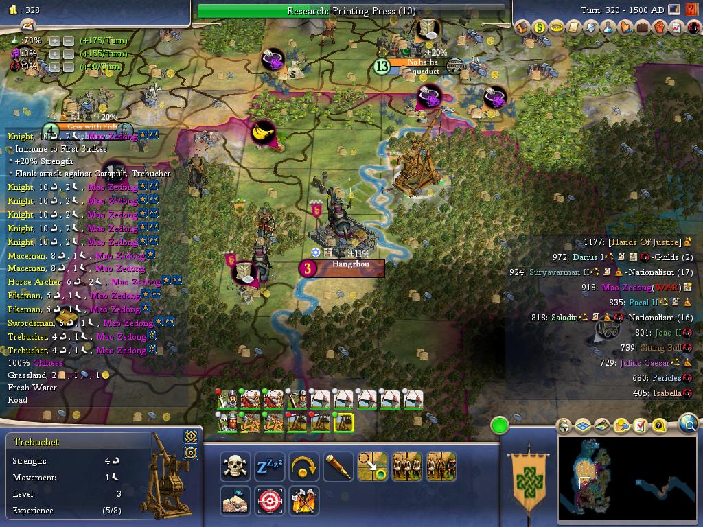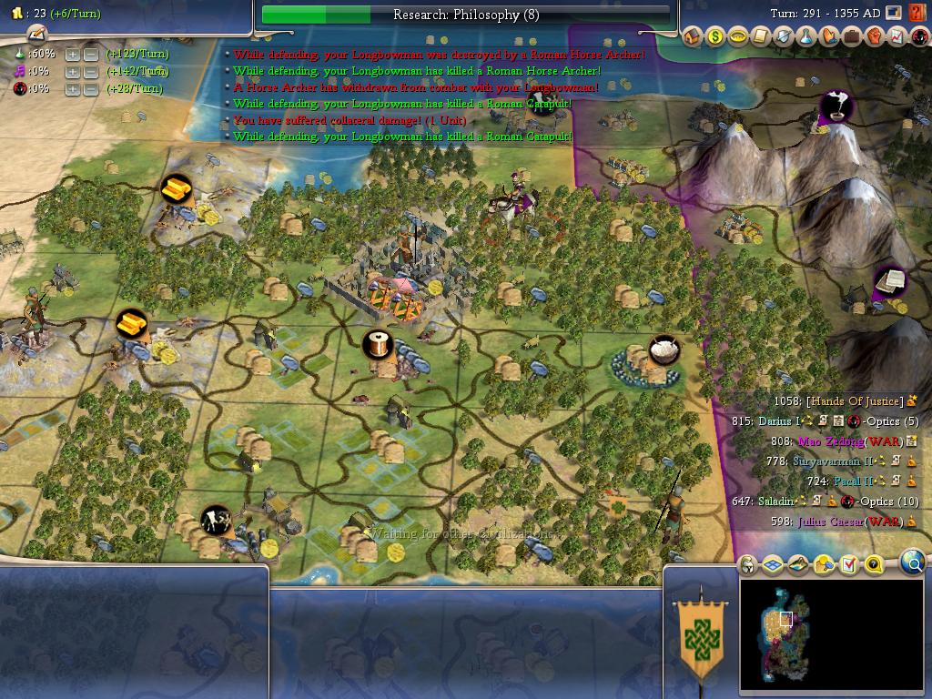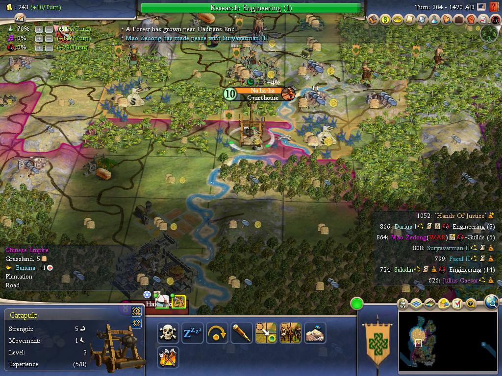 Victory! 1440 is the year that the Celtic people from Goes with Fish are reunited with their own again! Saffy3 now concentrates all his forces on the city of the wretched Chinese! But the Chinese forces from the Khmer front would come back before Saffy3 could muster a large enough force at the Chinese gates. He would have to wait even longer.