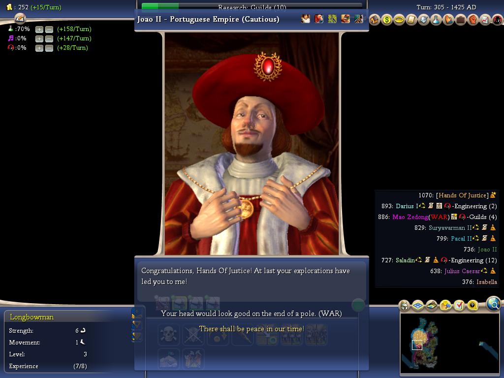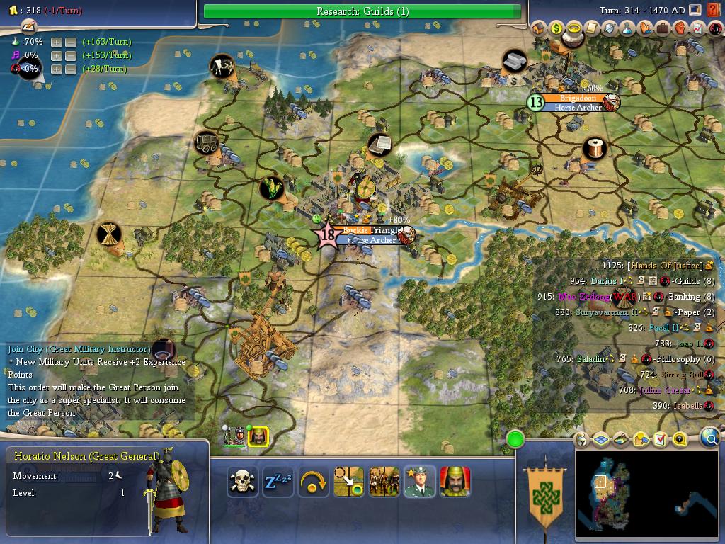 Saffy3 now orders to have guilds be established in his empire. This will attract strong warriors on horseback, much needed in the fight against the military superiour Chinese!