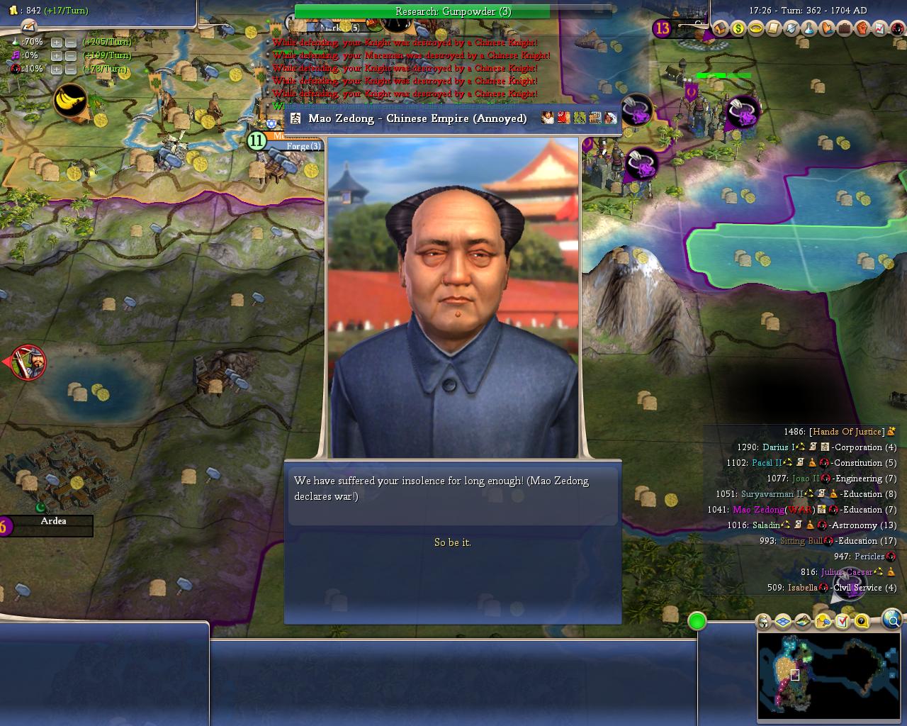 While this was going on we entered the Renaissance, hopefully all the god bothers will get out of the palace and let my scientists and artists back in, cannot keep hiding behind the couch when the religious show up can we as a nation?!