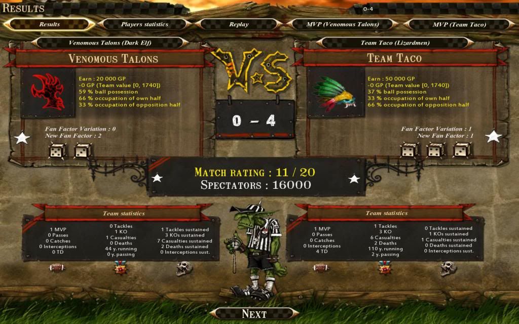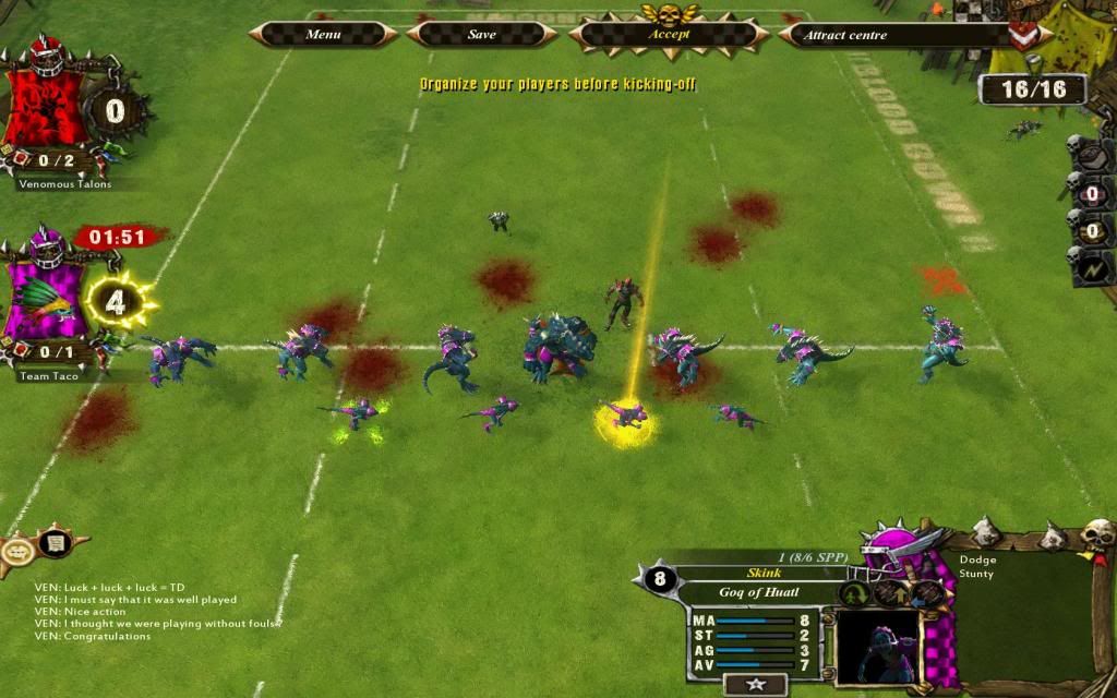 Just had the most awesome game in a single player semi-final against Skaven. Won 4-2. 1 Skaven dead and 5 badly hurt. 2 Dead on my team, 1 merc and 1 lvl 2 skink. Ridiculously fast paced game and admittedly quite thrilling, as most of the time Skaven score out of nowhere.